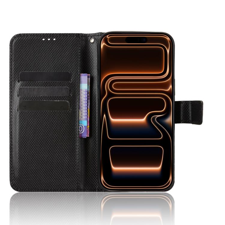 Funda de cuero con textura de diamante para iPhone 17 Pro (negra)