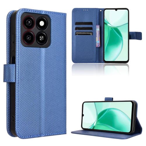 Funda de Cuero Textura de Diamante para ZTE Blade A35 (Azul)