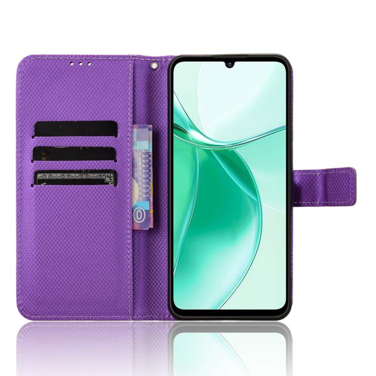 Funda de Cuero Textura de Diamante para ZTE Blade A35 (Morado)
