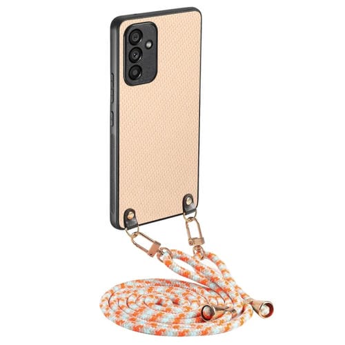 Funda Cuero Textura Fibra de Carbono Samsung Galaxy A54 5G con Correa Cruzada (Caqui)
