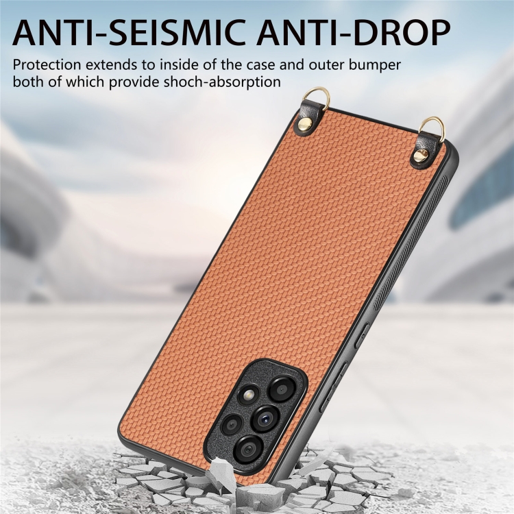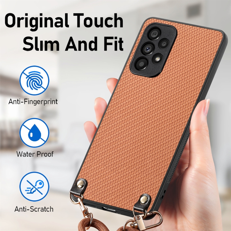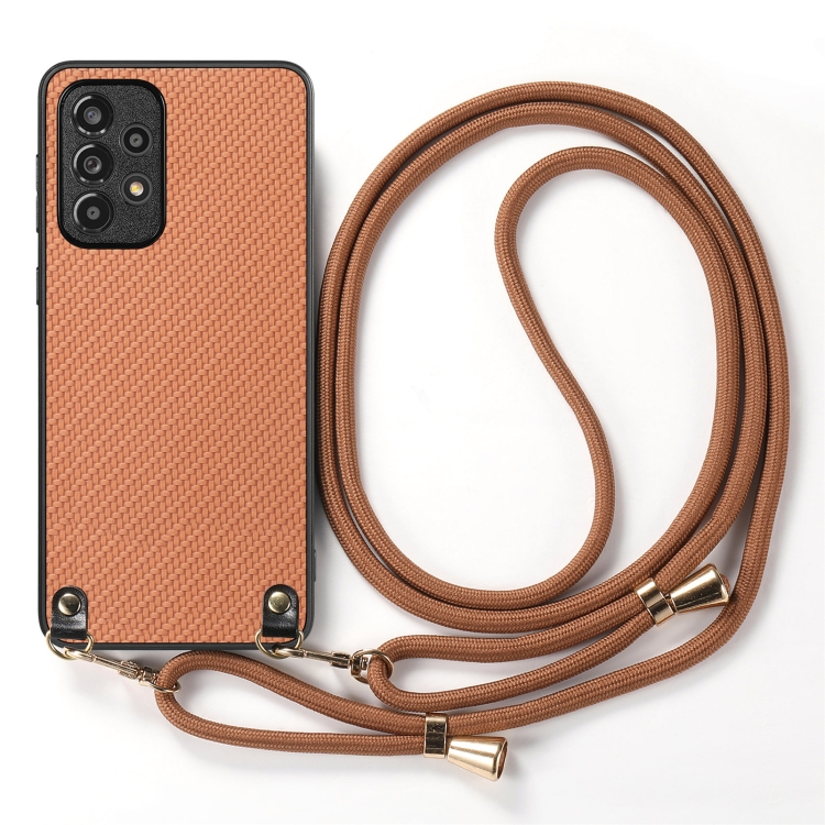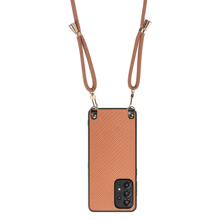 Funda Cuero Textura Fibra Carbono Samsung Galaxy Note10+ con Correa Cruzada (Marrón)
