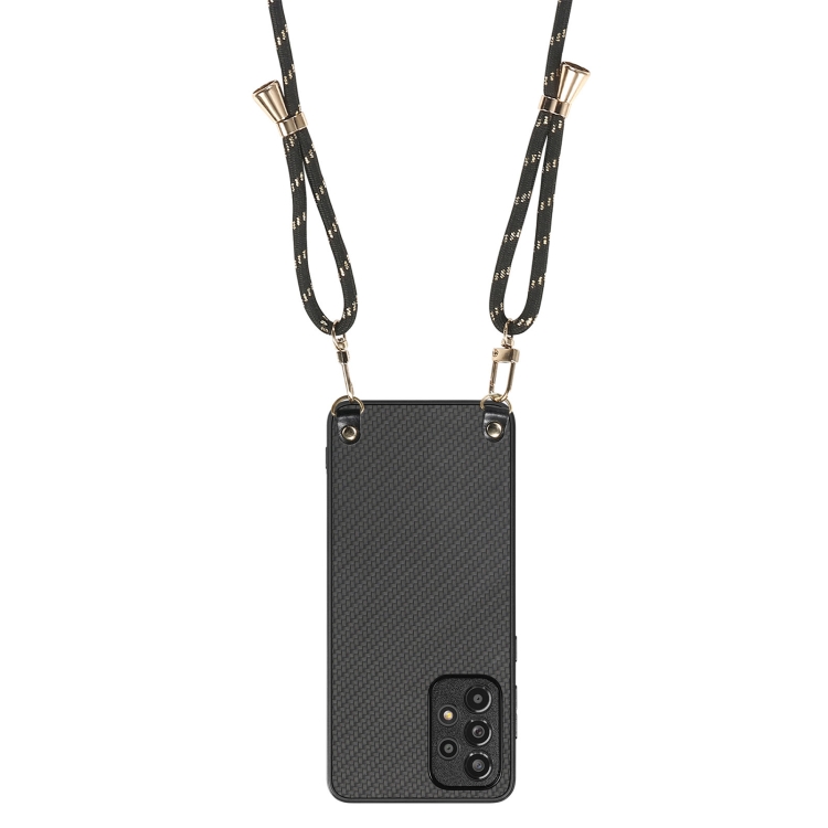 Funda Cuero Textura Fibra de Carbono Samsung Galaxy Note10 Correa Cruzada (Negro)