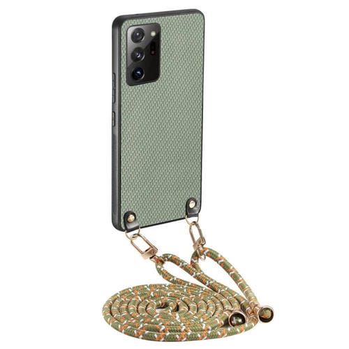 Funda cuero textura fibra carbono Samsung Galaxy Note20 Ultra con correa cruzada (Verde)