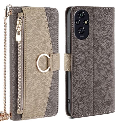 Funda de Cuero con Textura de Lichi y Bandolera para Honor 200 5G (Gris)