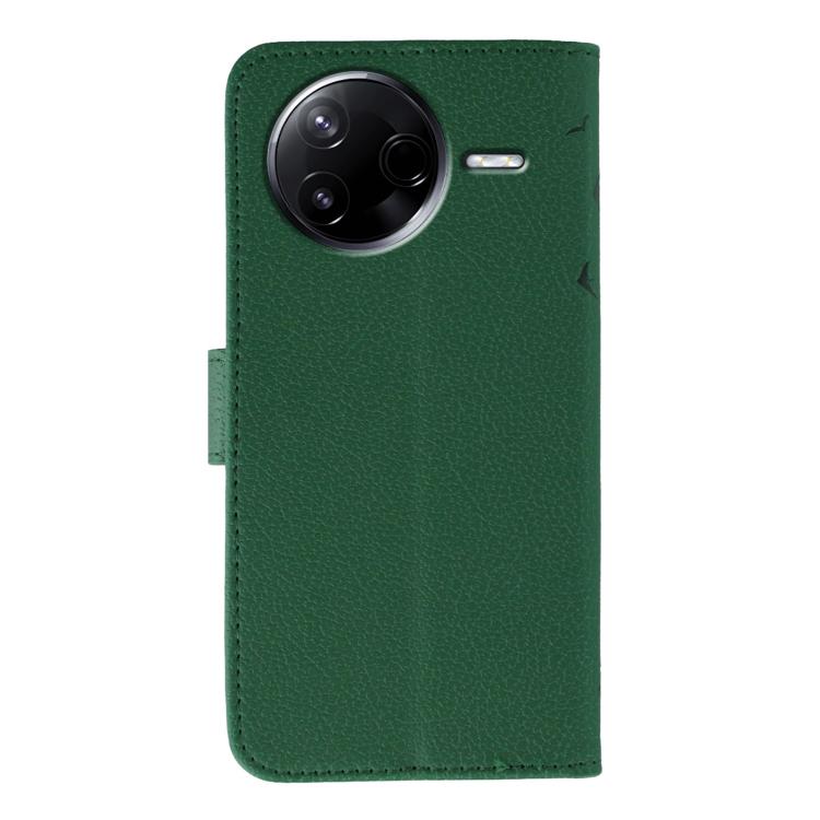 Funda de cuero con textura de lichi y estampado de plumas para Xiaomi Poco F7 Pro / Redmi K80 (verde)