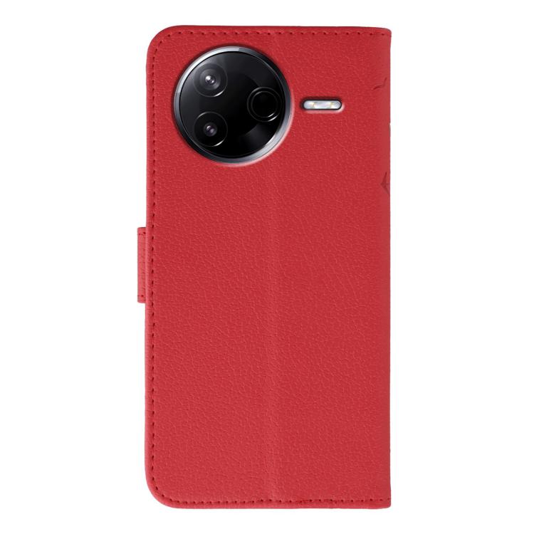 Funda de cuero con textura de lichi y estampado de plumas para Xiaomi Poco F7 Pro y Redmi K80 (roja)
