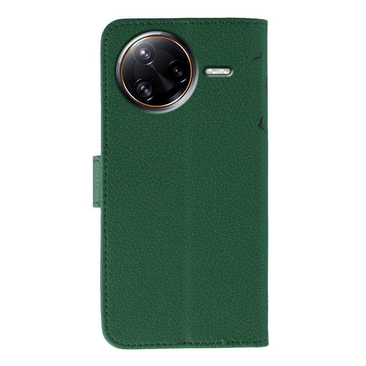 Funda de cuero con textura de lichi y estampado de plumas para Xiaomi Poco F7 Ultra / Redmi K80 Pro (verde)