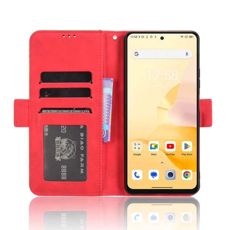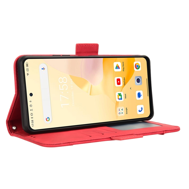 Funda de Cuero con Textura de Piel de Becerro y Ranuras para Tarjetas para BlackView Shark 8/Oscal Tiger 12 (Rojo)
