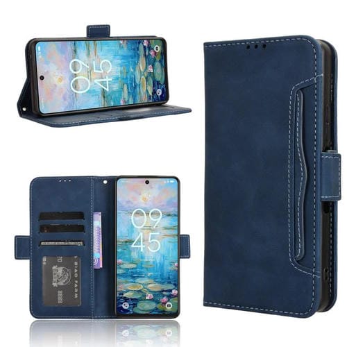 Funda de Cuero Textura Piel de Becerro con Ranuras para Tarjetas para TCL 50 Nxtpaper 5G (Azul)