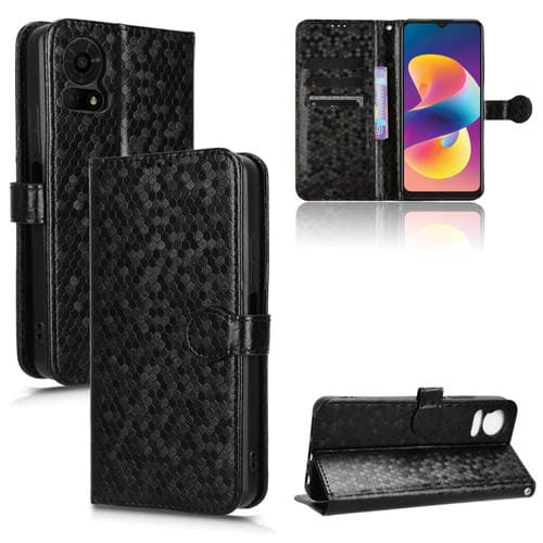 Funda de Cuero para TCL 50 Le 4G con Textura de Puntos en Forma de Panal (Negra)