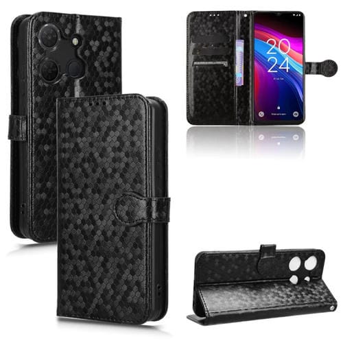 Funda de Cuero para TCL 503 con Textura de Puntos en Panal (Negra)