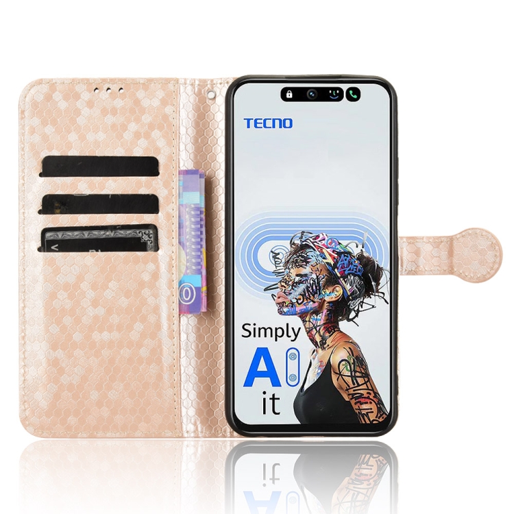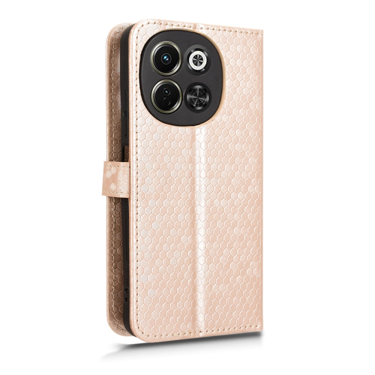 Funda de Cuero con Textura de Panal para Tecno Pova 6 Neo 5G y Spark 30 5G (Dorada)