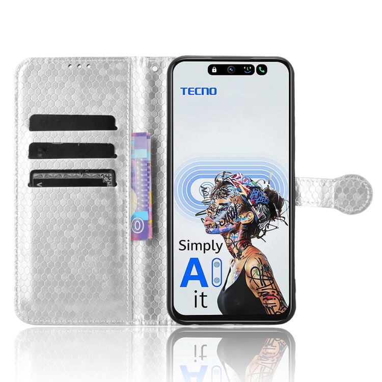 Funda de Cuero con Textura Panal para Tecno Pova 6 Neo 5G Spark 30 5G (Plateada)