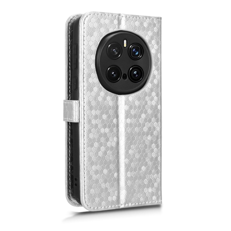 Funda de Cuero con Textura de Puntos en Forma de Panal para Honor Magic7 Pro 5G (Plateada)