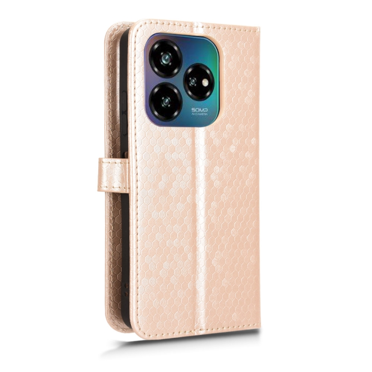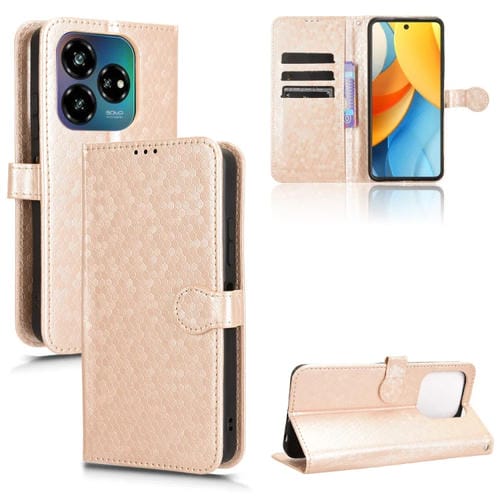 Funda de Cuero para ZTE Blade V60 con Textura de Puntos y Diseño de Panal (Dorada)