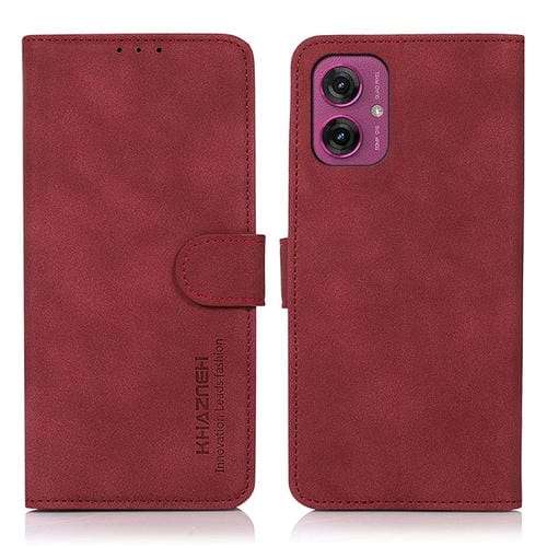 Funda de Cuero Khazneh para Motorola Moto G55 5G con Textura Mate (Rojo)