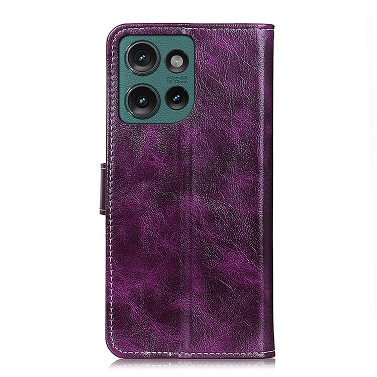 Funda de Cuero Retro Crazy Horse para Motorola Edge 50 Neo (Morado)