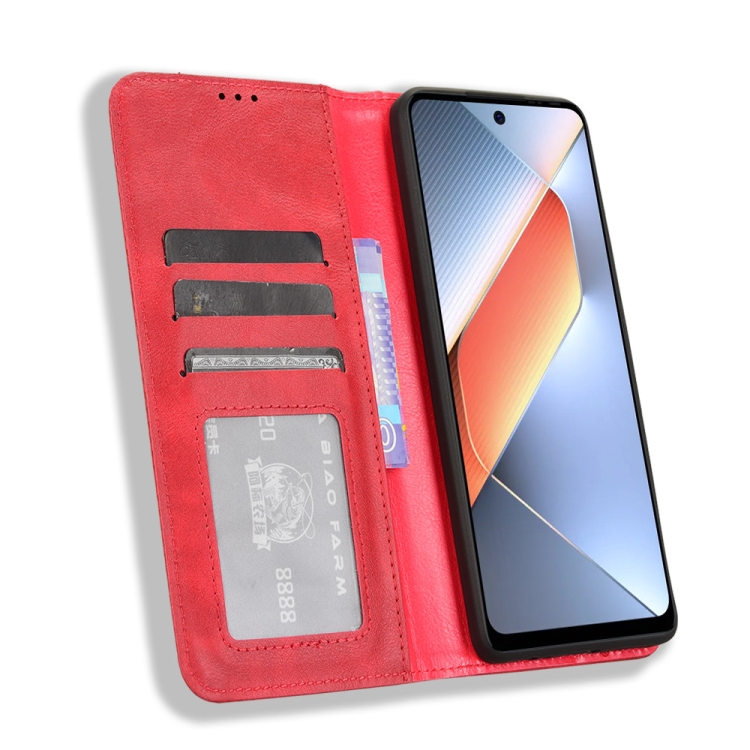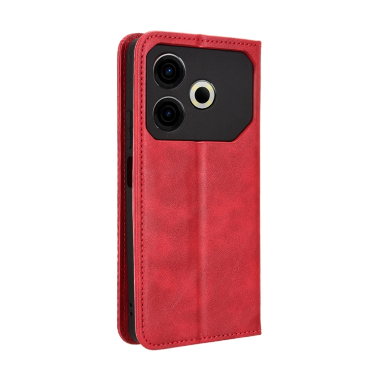 Funda de Cuero para Tecno Pova 6 Neo 4G con Textura Retro y Hebilla Magnética (Rojo)