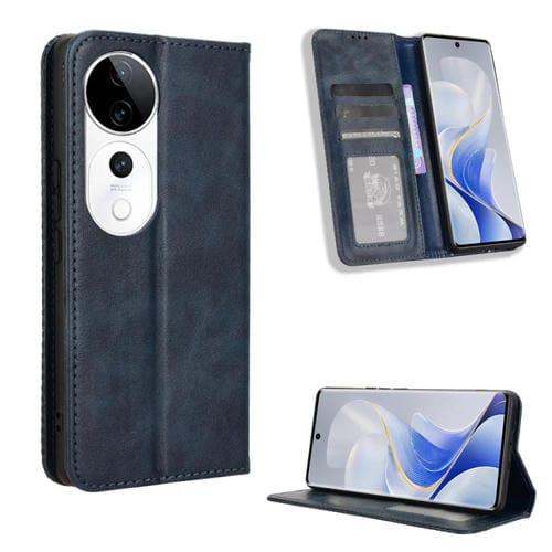 Funda de Cuero con Textura Retro y Hebilla Magnética para Vivo S19 Pro 5G/V40 5G (Azul)