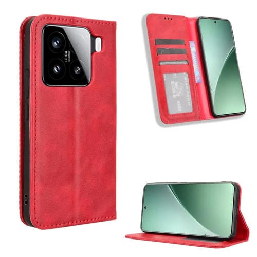Funda De Cuero Con Textura Retro Y Hebilla Magnética Para Xiaomi 15 Pro (Roja)