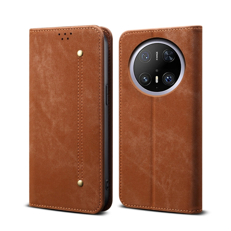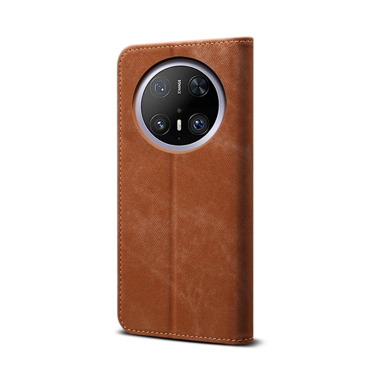 Funda de Cuero con Textura Vaquera para Huawei Mate 70 5G (Marrón)