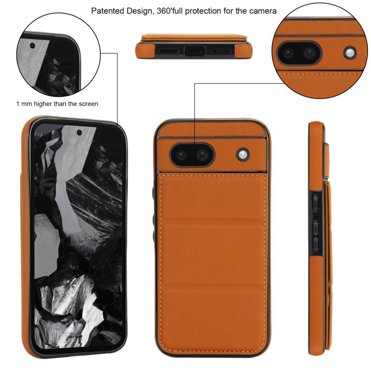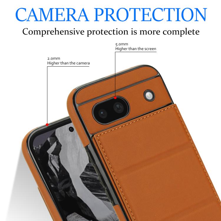 Funda de Cuero Google Pixel 8A con Tres Pliegues y Ranura para Tarjetas (Marrón)