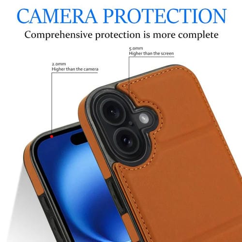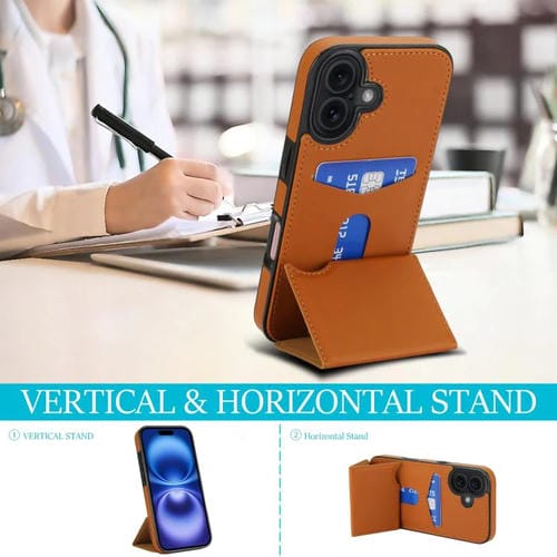 Funda de cuero con tres pliegues y ranura para tarjetas para iPhone 17 (marrón)