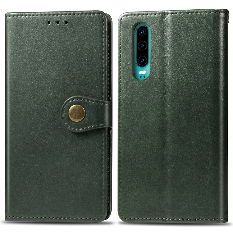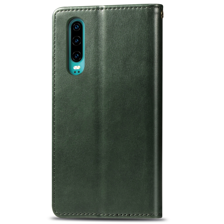 Funda de Cuero para Huawei P3 con Hebilla, Ranura para Tarjeta, Billetera y Soporte (Verde)
