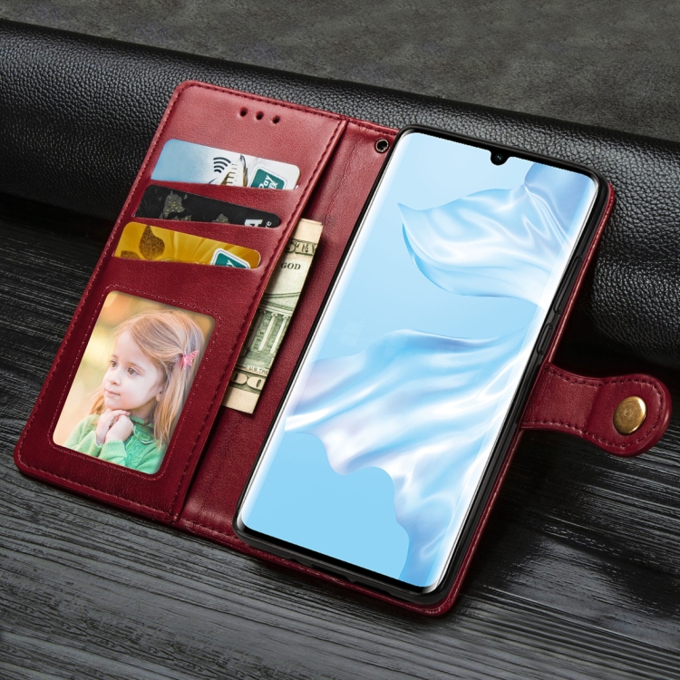 Funda de Cuero para Huawei P30 Pro con Hebilla, Ranura para Tarjeta y Soporte (Rojo)