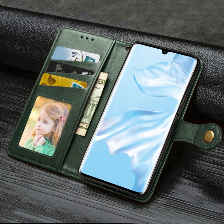 Funda de Cuero para Huawei P30 Pro con Hebilla, Ranura para Tarjeta, Soporte y Marco de Fotos (Verde)
