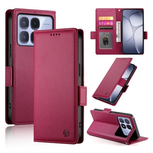 Funda de Cuero Esmerilado con Hebilla Lateral Magnética para Redmi K70 Ultra (Rojo Vino)