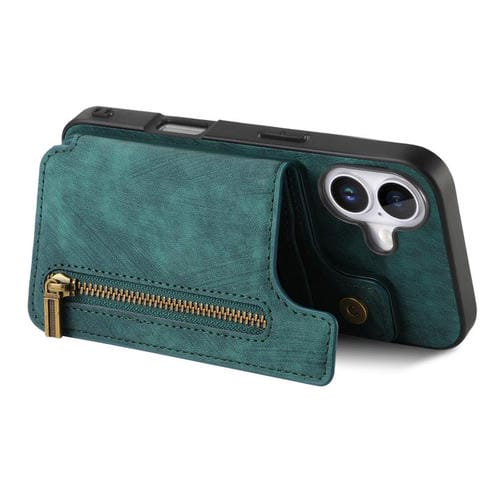 Funda de cuero estilo billetera con cremallera para iPhone 17 (verde)