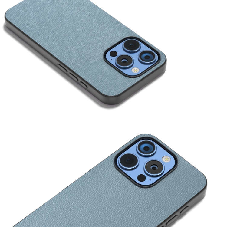 Funda de Cuero Genuino Abeel con Borde Negro para iPhone 16 Pro Max (Azul)