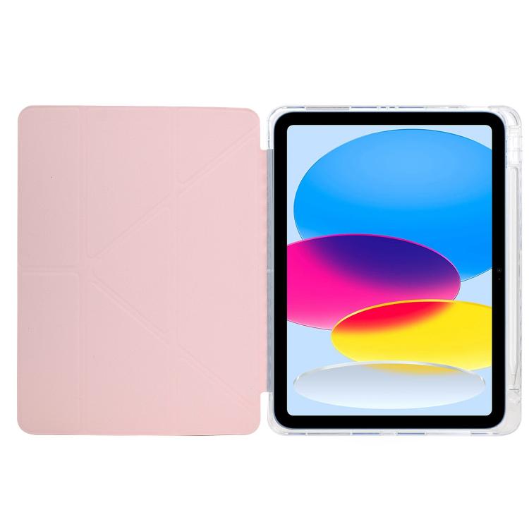 Funda de cuero inteligente con purpurina acrílica transparente plegable en Y para iPad Pro 11 (2024) (oro rosa)