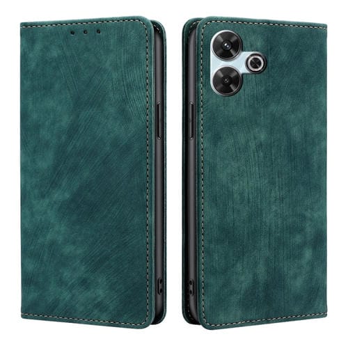 Funda de Cuero Magnética con Cepillo Antirrobo Rfid para Redmi 13 4G (Verde)