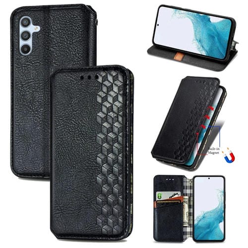 Funda Cuero Magnética Samsung Galaxy A36 5G Diseño Cuadrícula Cúbica (Negra)