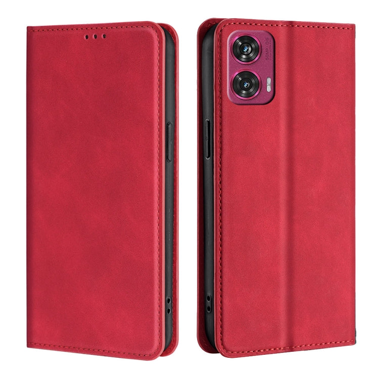 Funda de Cuero Magnética con Tacto de Piel para Motorola Edge 50 Fusion 5G (Roja)