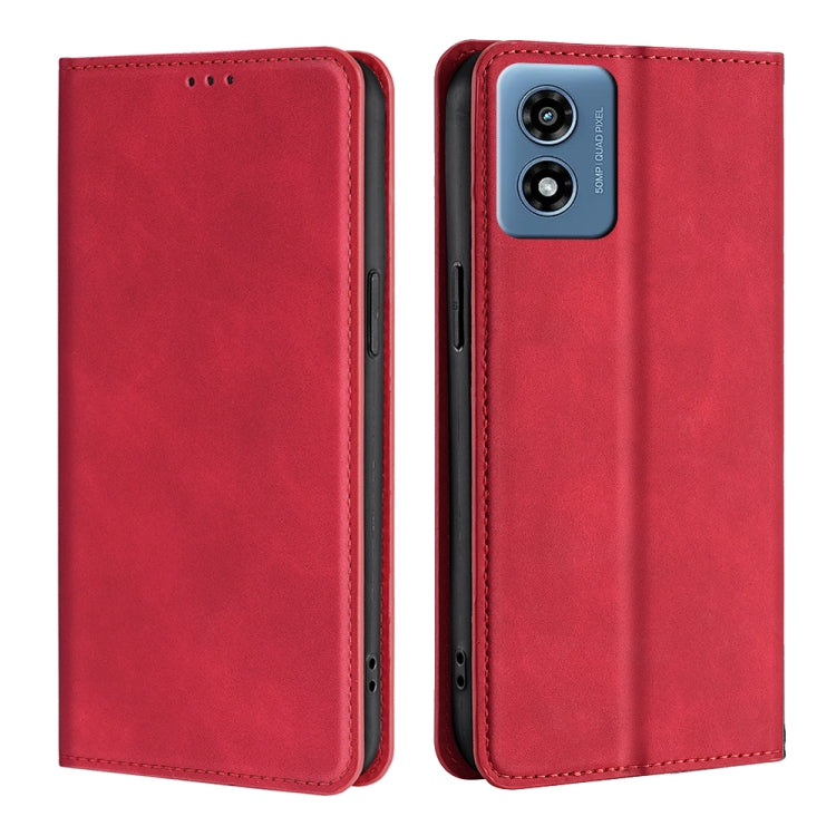 Funda de Cuero Magnética con Tacto de Piel para Motorola Moto G 5G (2024) (Rojo)