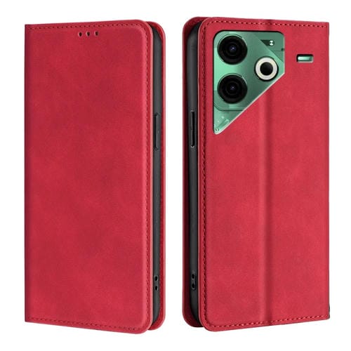 Funda de Cuero Magnética con Tacto de Piel para Tecno Pova 6 Neo 4G (Roja)
