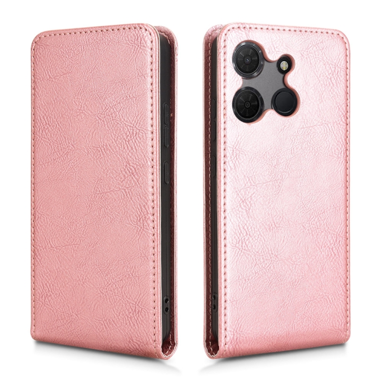 Funda de Cuero Magnética con Tapa Vertical para Teléfono TCL 503 (Oro Rosa)