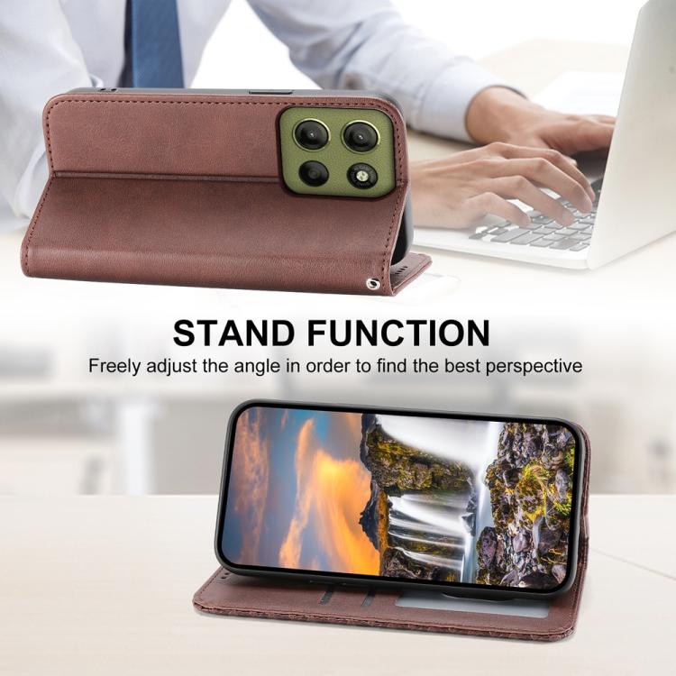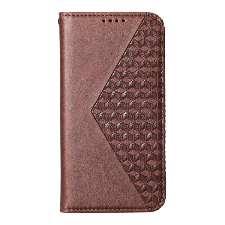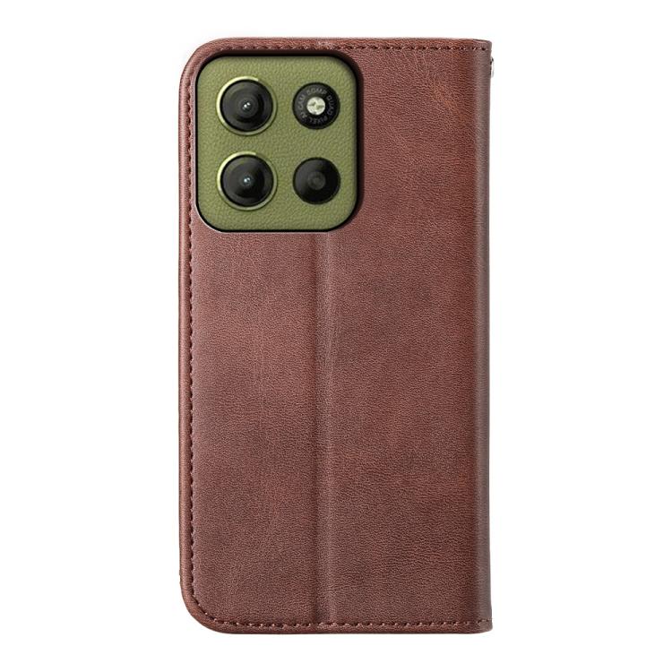 Funda de Cuero Magnética para Motorola Moto G15 con Textura de Becerro y Cuadrícula Cúbica (Marrón)