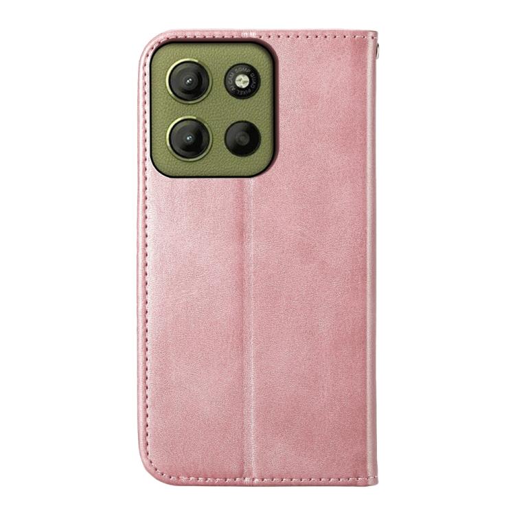Funda de Cuero Magnética Motorola Moto G15 Textura Piel de Becerro Cuadrícula Cúbica (Oro Rosa)