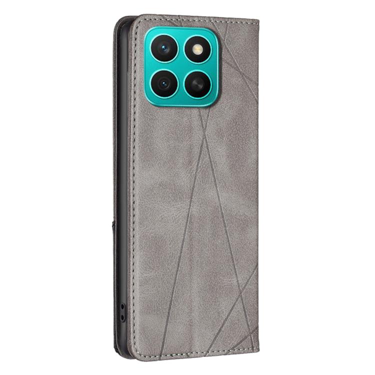 Funda de Cuero Magnética con Textura de Rombos para Honor X8C 4G (Gris)