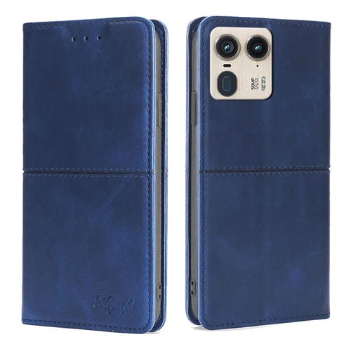 Funda de Cuero Magnética con Textura de Vaca para Motorola Edge 50 Ultra (Azul)