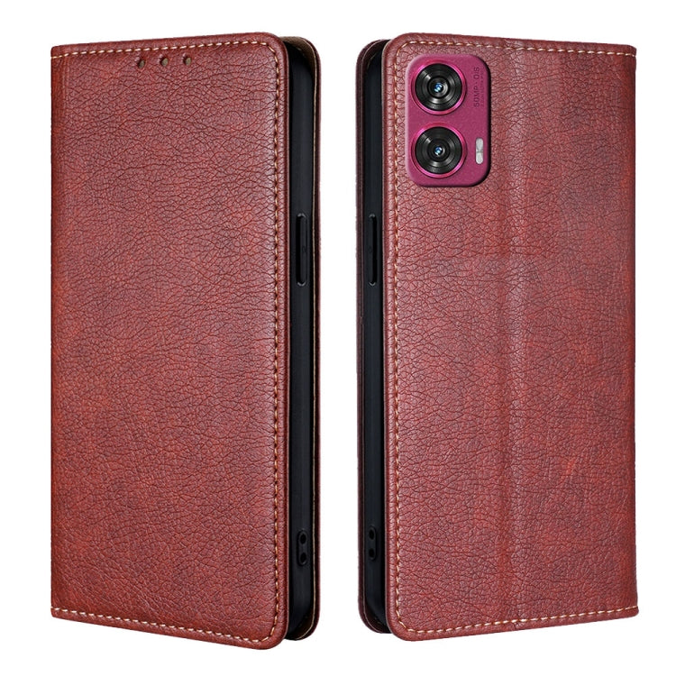Funda de Cuero Magnética para Motorola Edge 50 Fusion 5G (Marrón) con Acabado Brillante