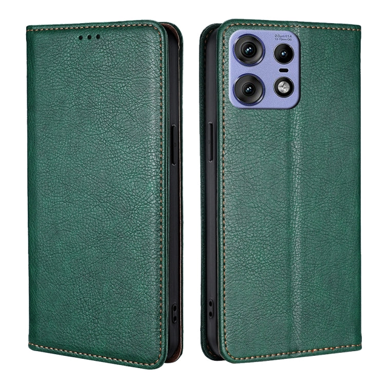 Funda de Cuero Magnética para Motorola Edge 50 Pro 5G con Acabado Brillante y Aceite Sólido (Verde)