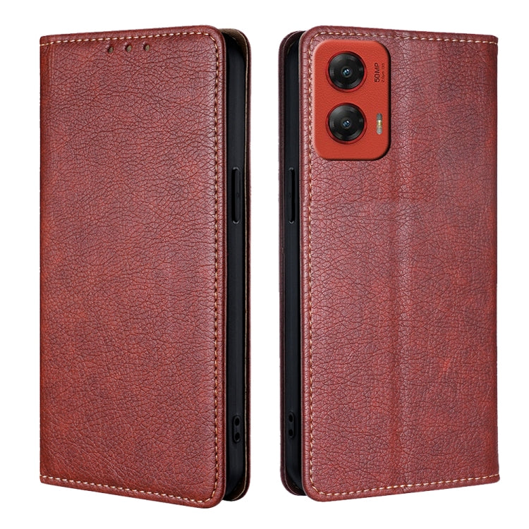 Funda de Cuero Magnética para Motorola Moto G Stylus 5G (2024) con Acabado Brillante (Marrón)