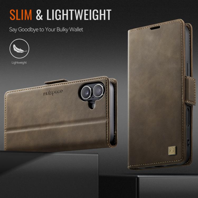 Funda de cuero magnética RFID MagSafe con hebilla lateral para iPhone 17 AutSpace A11 (café)