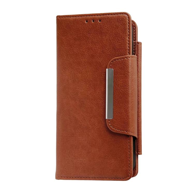Funda de cuero multifuncional para iPhone 17 con 7 tarjetas (marrón)
