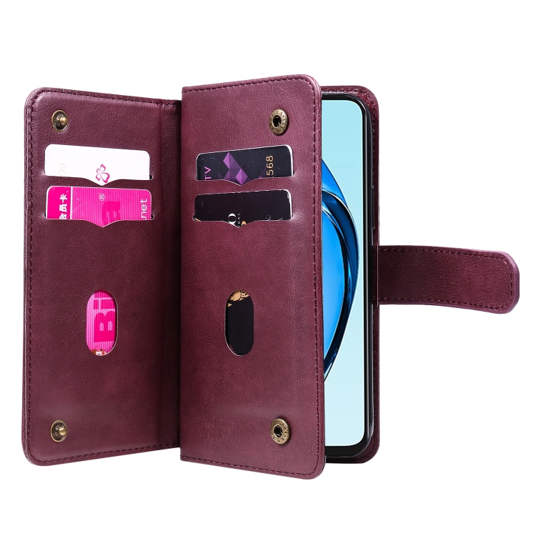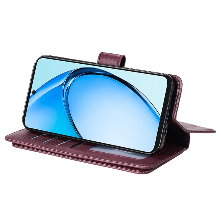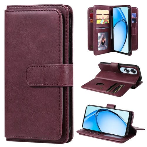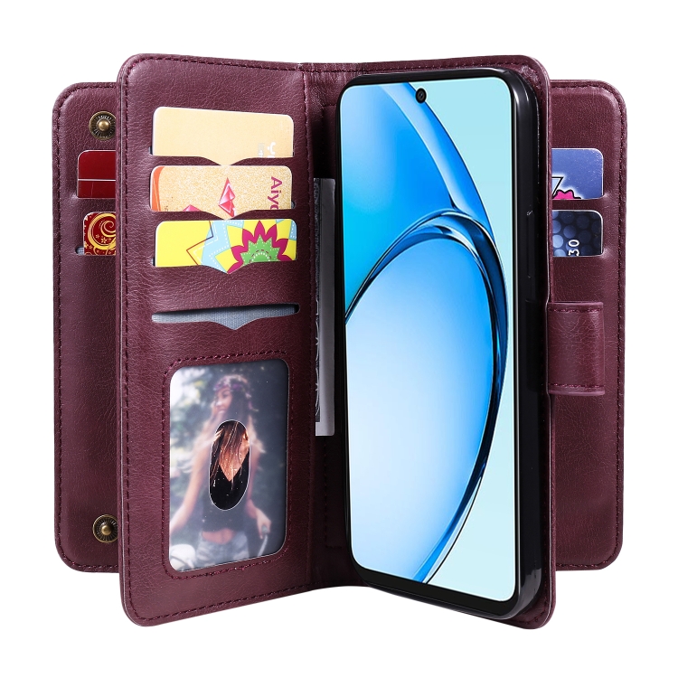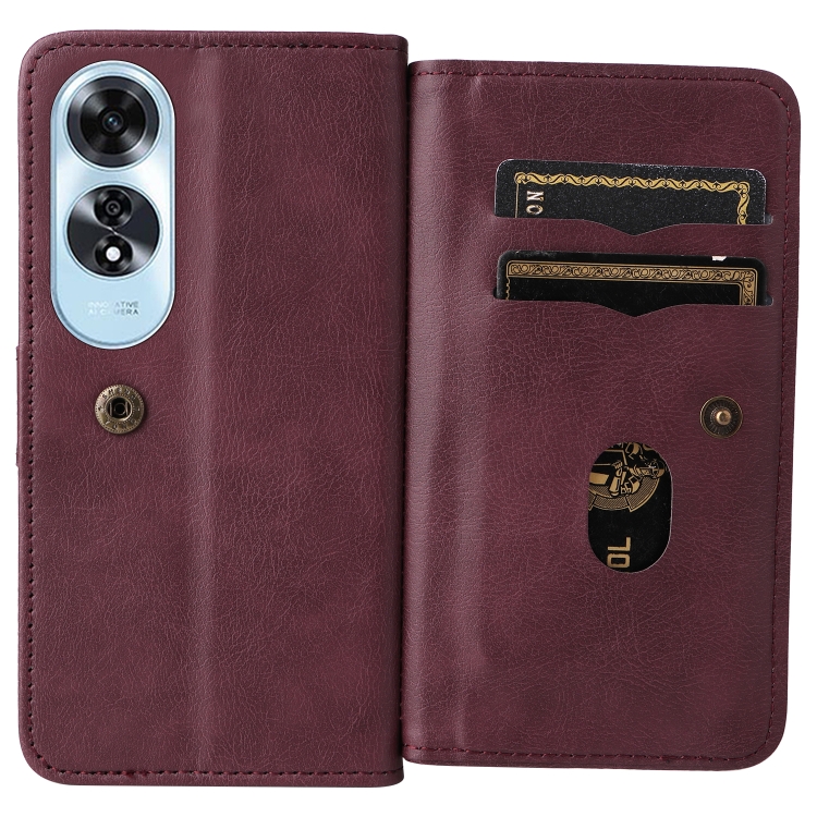 Funda de Cuero para Teléfono con 10 Ranuras para Tarjetas y Billetera Multifunción para Oppo A60 4G (Clarete)